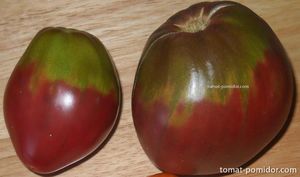 Характерной особенностью данного вида является окраска плодов – темно-бордовая с коричневым оттенком. Помидоры крупные, весом до 800 грамм. Черное Бычье сердце характеризуется как позднеспелая культура с высокими показателями урожайности, поэтому довольно популярен среди огородников.